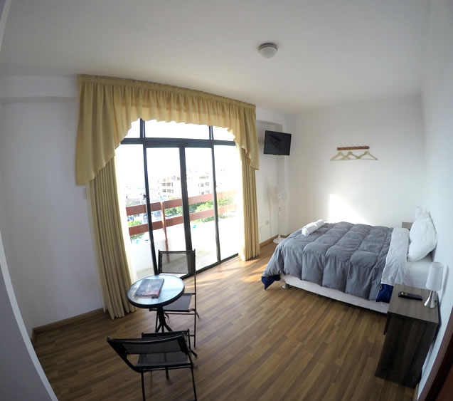 Nuestras habitaciones matrimoniales son cómodas y espaciosas, para vivir una estadía en Paracas solo o junto a la persona amada y compartir con ella momentos mágicos. Después de un día intenso de paseo por Paracas, el relax se vuelve algo absolutamente necesario. Podrá disfrutar entonces de la televisión como si estuviera en casa. Relajado en la amplia y cómoda cama para leer un libro o para navegar en internet, gracias a nuestro servicio de internet de alta velocidad, o bien disfrutar de un baño caliente.