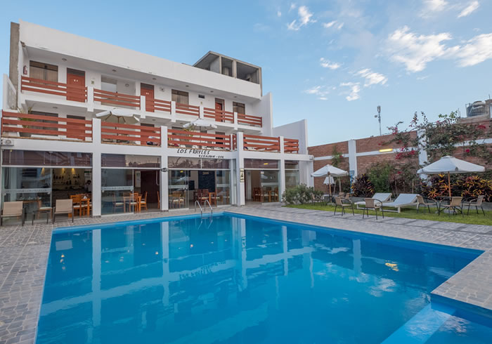 El Hotel Residencial Los Frayles es un moderno y elegante hotel de 3 estrellas, con vista al mar, ideal para unas vacaciones románticas o gratos momentos en familia, en el mágico escenario de Paracas, Perú.